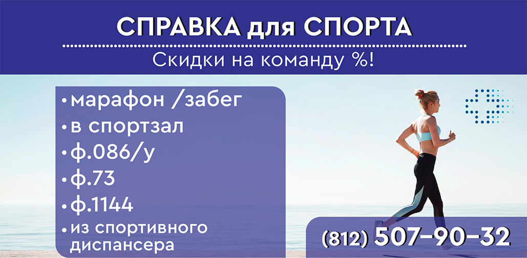 Справка для спорта в СПб — это официальный медицинский документ, который подтверждает отсутствие противопоказаний к занятию физической культурой, спортом и любыми видами спортивных тренировок. Такая справка обязательно требуется для допуска в спортивные секции, клубы, басcейны, детские и взрослые спортивные учреждения, участия в соревнованиях и спортивных мероприятиях разного уровня. Документ оформляется по стандартной форме (как правило, 073/у) и выдается после прохождения ряда обязательных обследований.
